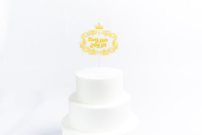 Wedding Mabrook Golden Yellow Arabic Acrylic Cake Topper